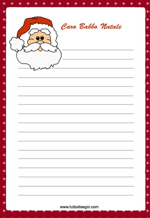 Lettera di Babbo Natale da stampare gratis - Mammarum Ecco qualche idea per la Lettera di Babbo Natale da stampare gratis. Qualche anno fa vi avevo già proposto la nostra lettera per Babbo Natale da scaricare e stampare gratis. E' una tradizione molto carina quella di scrivere la lettera a Babbo Natale, perfetta da mettere nel calendario dell'avvento in una delle prime caselle o da trovare a colazione insieme magari ad una fetta di torta ...