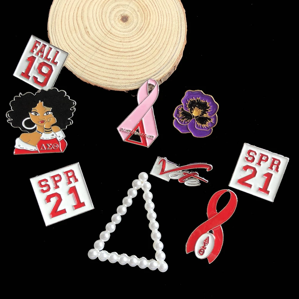 Lega di metallo forma triangolare pietra rossa lettera greca Delta Charms ciondolo sorellanza società gioielli accessorio fai da te