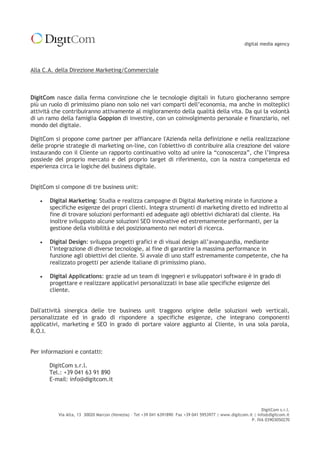 Lettera di presentazione azienda: esempi - Francesco Seclì Una buona lettera di presentazione aziendale, quindi, deve rispettare precisi criteri di "galateo" di comunicazione tra azienda e clienti o tra azienda e altre imprese, che, come ora noterai, non sono di forma ma di sostanza. Una lettera di presentazione efficace dovrà dunque essere: Lettera di presentazione aziendale: breve e semplice